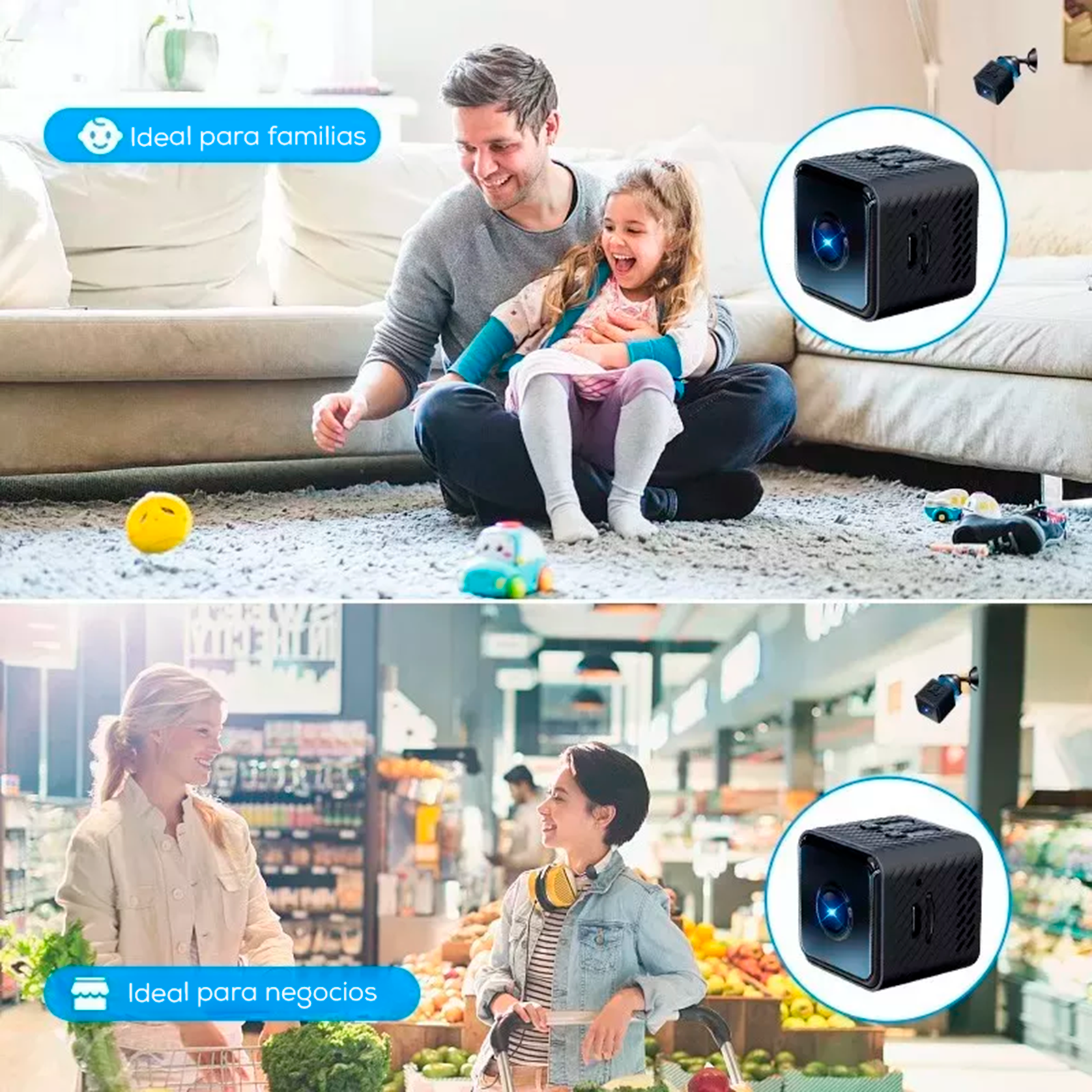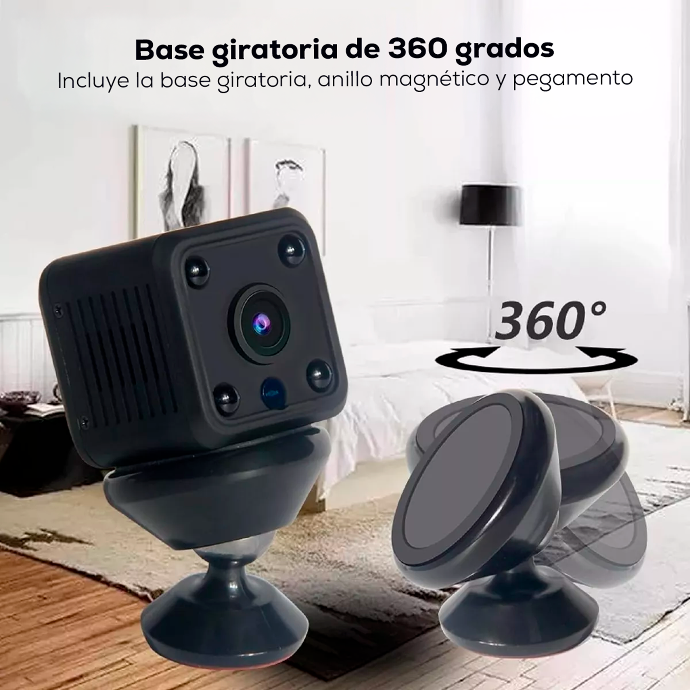 - Base magnética y kit de montaje: Instala la cámara en paredes o techos de forma sencilla.