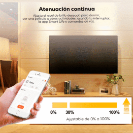 - App Smart Life: Conéctalo a la aplicación para controlar tus luces de forma remota desde cualquier lugar. Ideal para manejar horarios, frecuencias y tiempos de encendido/apagado.