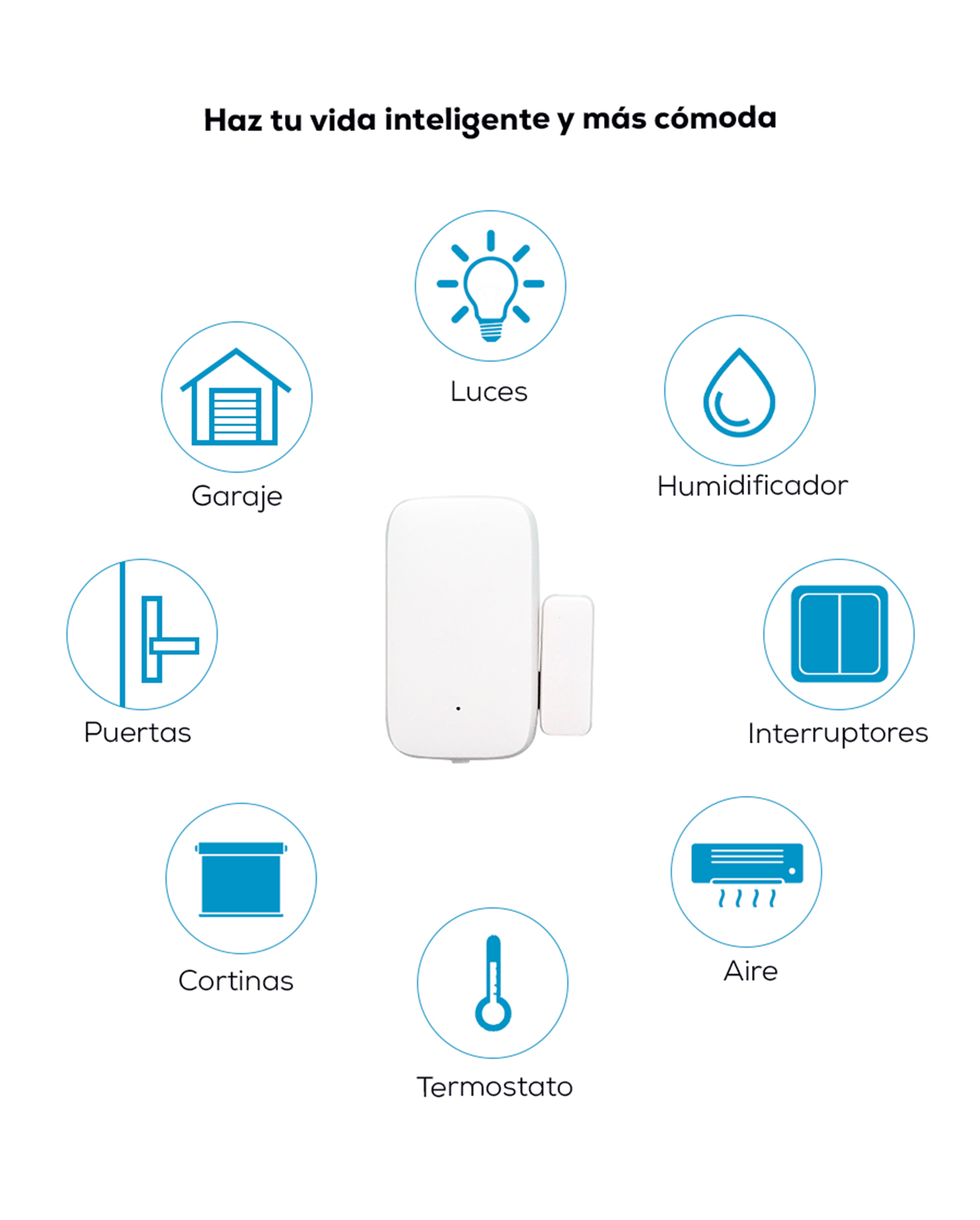 - Detecta la apertura y cierre de puertas, ventanas o accesos estratégicos.