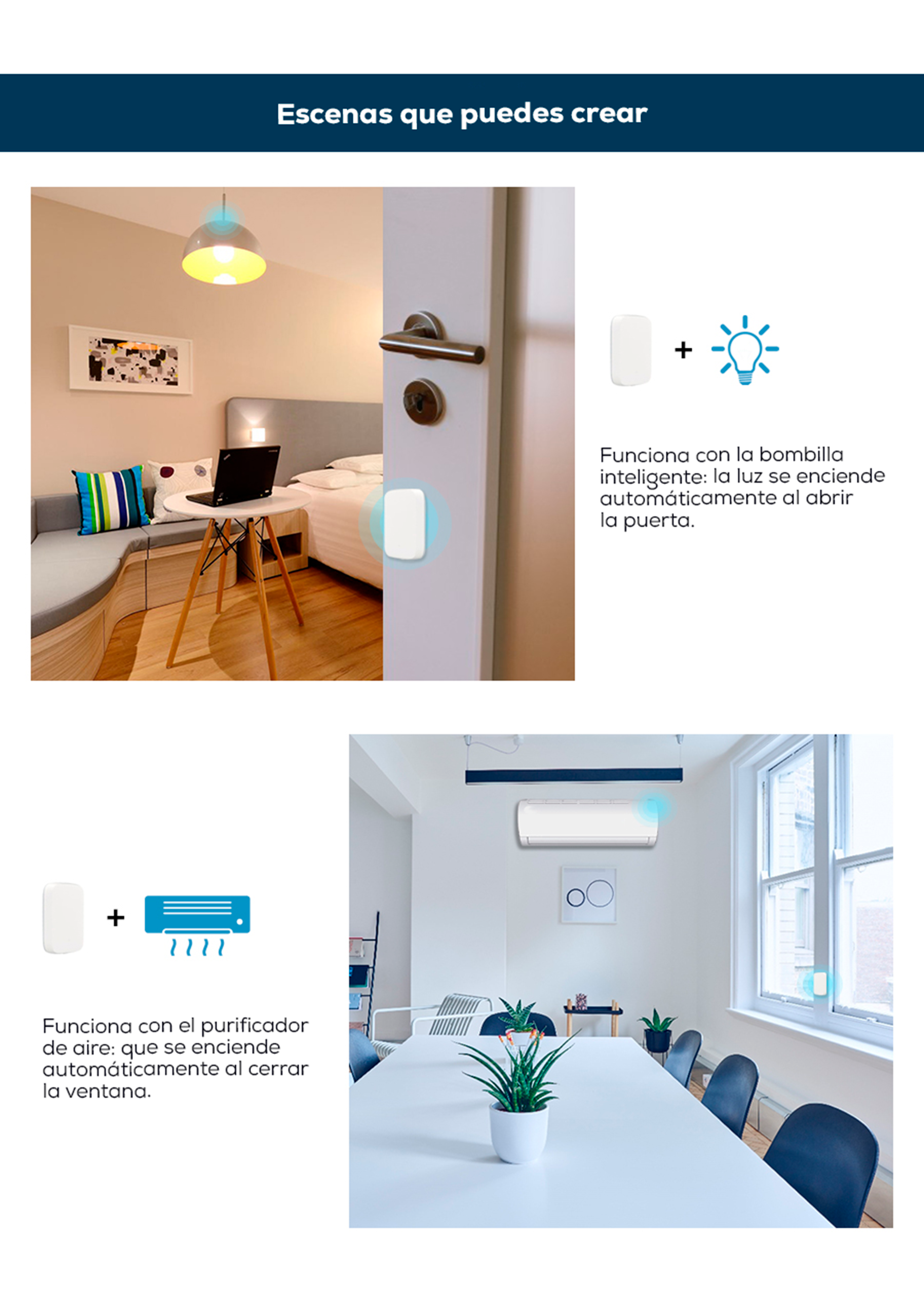- Configura funciones como encender luces, abrir cortinas o activar el aire acondicionado al detectar actividad.