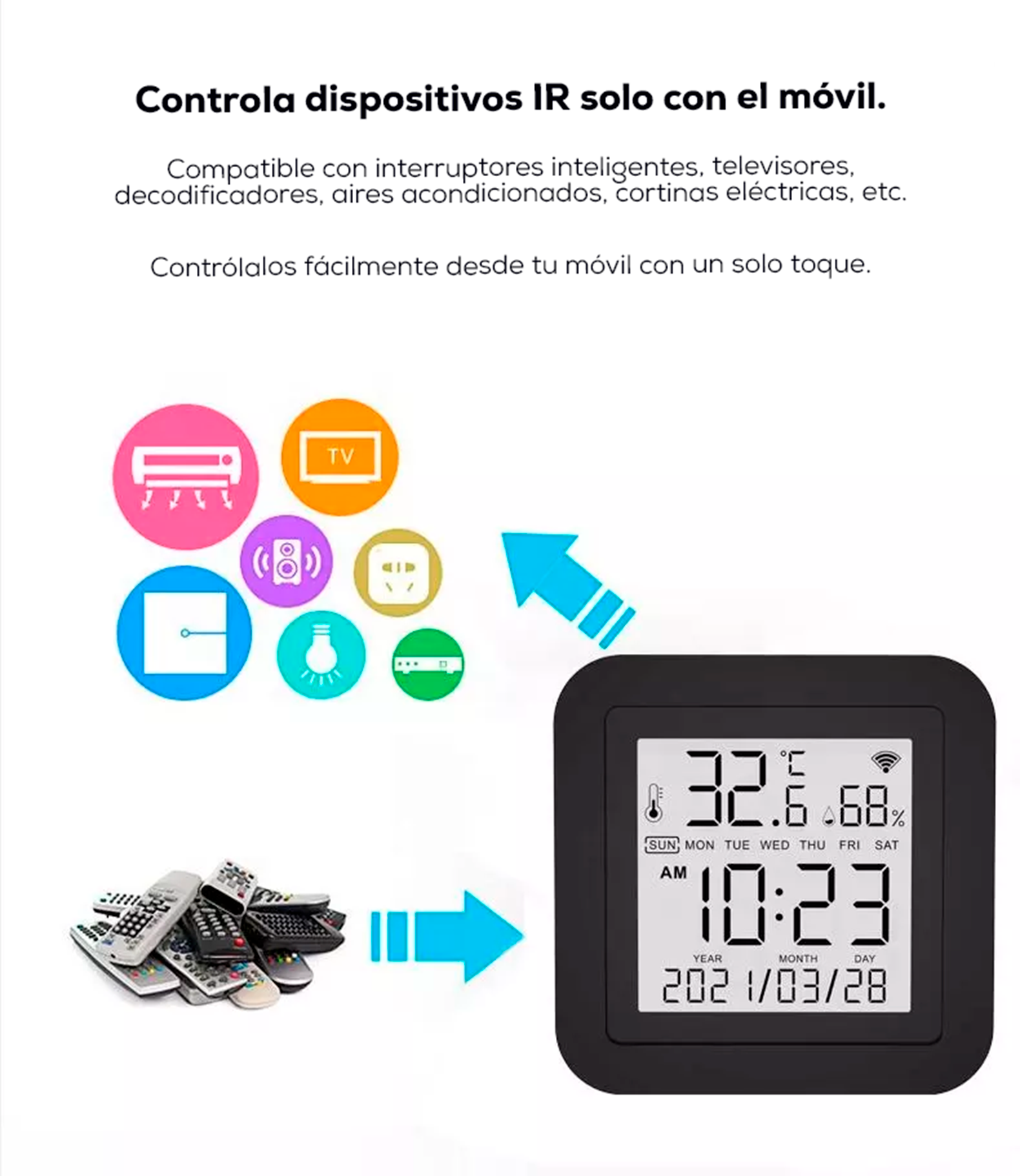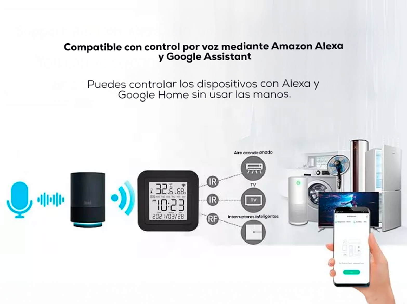 - Compatible con más del 98 % de los electrodomésticos: Maneja aire acondicionado, televisores, ventiladores, luces y más desde tu celular.